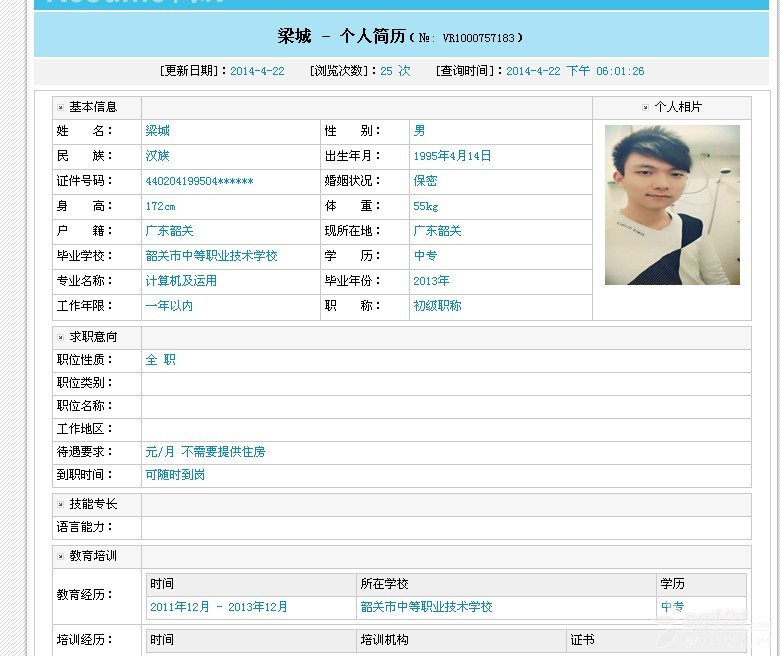 求職..詳細簡歷,請看附件