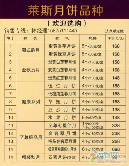 正文摘要:五星品質(zhì),五星享受 2014年萊斯大酒店月餅券員工價熱銷中 歡迎廣大朋友致電咨詢購買 林小姐:15875111445(歡迎朋友加微信好友了解詳細信息) QQ:413778007(空間有相關(guān)價目表及品種介紹) |